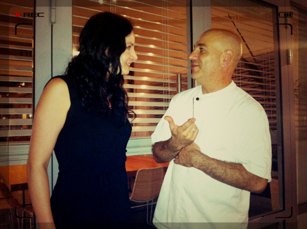 האוירה הכללית היתה שמחה והמקום היה מלא. מלצרית נחמדה נגשה אלינו והציעה עוד אוזו - היא הסבירה שהיום זה ערב בסגנון יווני, שאלנו במה זה מתבטא - הרי המוסיקה אינה יוונית אז אולי האוכל המוגש מקורו בסלוניקי. המלצרית חשבה שניה וענתה שהאוזו יווני. לאור חיבתנו המועטה למוסיקה יוונית החלטנו שטוב שכך, וניגשנו לתפריט.