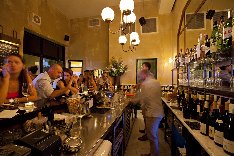לא מזמן ביקרתי ב"איטליה הקטנה" שבניו-יורק- איזור קטן ובו נוכחות איטלקית דומיננטית שמתבטאת בכנסיות קתוליות, בשפע מסעדות איטלקיות ודוכני קנולי. אפילו נוכחות של מאפיונרים (סוג של) ראיתי שם. בהקשר לזה אפשר לקרוא לנווה צדק "צרפת הקטנה", גם בגלל האווירה וגם בגלל התושבים. אחד המקומות שמתמזג עם השינוי הוא בר היין ז'אז'ו וינו שבנווה צדק, מקום קסום ורומנטי (לעזאזל כמה דייטים ראשונים היו לי שם- יסלח לי בעלי) בו מגוון רחב של יינות מכל העולם על מדפים שמגיעים עד לתקרה לצד מנות אוכל קטנות והרבה קסם. קחו לדוגמה יינות כמו ברברסקו וברברות מפיאמונטה, בורגונים לבנים ואדומים, שמפניה צרפתית ועוד. ברקע בדר"כ צלילים של מוזיקה ערבית, צרפתית, או ספרדית מהאוסף הפרטי של הבעלים. על העיצוב אחראי המעצב דן טרוים כשהסגנון רומנטי על גבול הקיטש הספרדי. על הקירות חיפויי חרסינה בטקסטורה ייחודית, הריהוט בסגנון ביסטרו והגוונים כהים ומסתוריים.