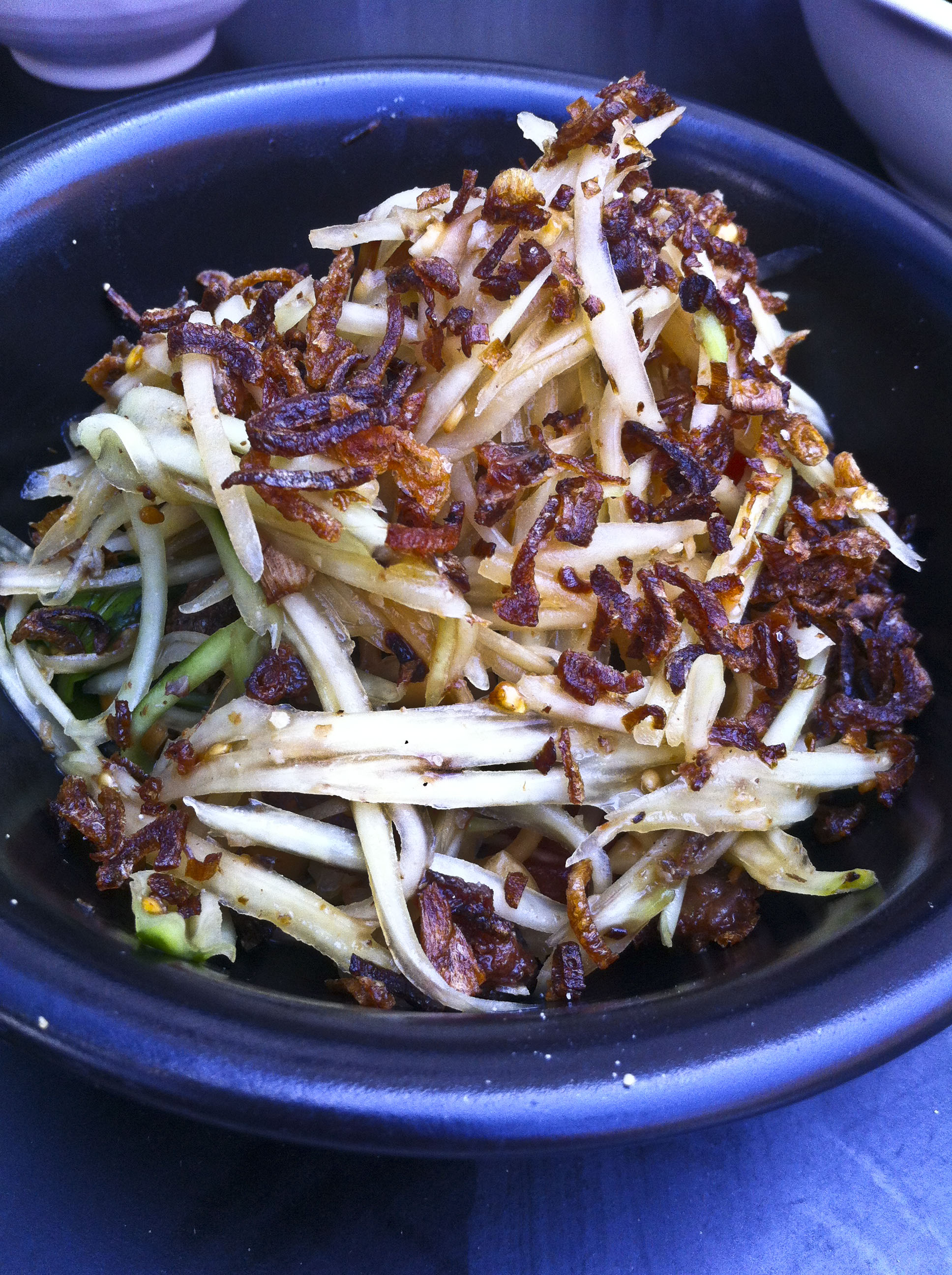 אני דווקא בחרתי במנות דגים משל היותי נשית וקוקטית, והתחלתי בסלט פפאיה ירוקה עם דג קריספי, קשיו, עגבניות שרי ושאלוט מקורמל שלא עמד בסטנדרט של המנות שקדמו - והיה סביר ולא מעבר. Wow לא היה פה.