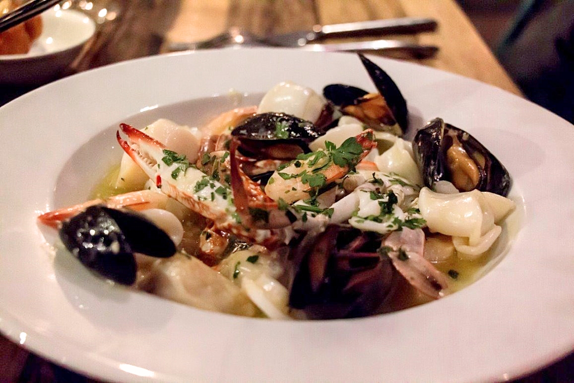 מנה נוספת שלקחנו היא מיקס פירות ים (125 ₪) שניתן לבחור את הרוטב: שמנת, עגבניות או שום חמאה ויין. כמובן שהלכנו על הקלאסי- שום חמאה ויין והמנה שהגיעה היה גדולה ומספקת, כל הפרודוקטים רכים וטריים וטובים מאוד. המולים היו ענקיים ורכים, לצידם היו שרימפס, קלמארי וקוקי סאן ז'ק וסרטן שספג את כל טעמי הרוטב לקרבו. בצד קיבלנו תפוחי אדמה שנאפו בתנור אך ויתרנו עליהם בגלל עודף פפריקה.