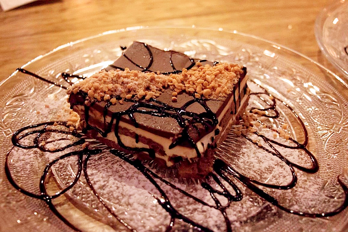 לא ויתרנו על קינוחים, שובבים שכמותנו, ובחרנו בשניים: שוויצריה הקטנה- עוגיית שוקולד, מעל זה קרם מסקרפונה כשבתוכו שכבה קריספית של שוקולד מריר ומעליו נטיפי שוקולד לבן קצפיים. שוויצריה לא אכזבה והיתה טובה ומענגת, רכה ומלטפת, ממש כמו שהיא נראית בתמונה. כדי שחס וחלילה לא נצא רעבים לקחנו גם עוגת ביסקוויטים עשויה משכבות ביסקוויט, קרם וניל ושכבת שוקולד קריספית מתפצפצת שמתחבאת בין כל השכבות. (כל קינוח עולה 40 ₪). גם עוגת הביסקוויט היתה מנחמת כמו כוס תה בליל חורף קר, ובבירור שעשינו גילינו שחלק מהקינוחים נעשים במקום כמו המלבי שלהם, וחלק נעשים ע"י חברת "ביסקוטי". מה שלקחנו אגב, היה של "ביסקוטי".