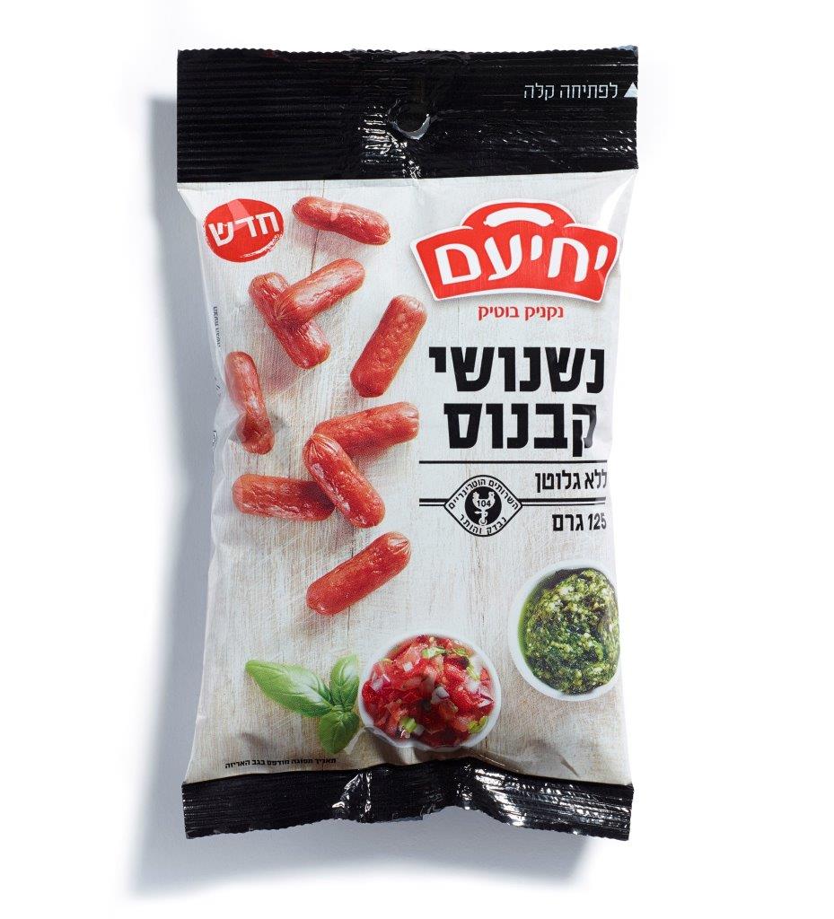 מה נסגר: "מעדני יחיעם" משיקה נשנושי קבנוס- חטיפי קבנוס דקים וקטנים בטעם עשיר ובארומה נפלאה ההופכים את הקבנוס לחטיף עשיר חלבון המתאים לאירוח ולאכילה מחוץ לבית. הקבנוס הנו נקניק שמקורו במטבח הפולני, העשוי בשר בקר. לרוב משמש הקבנוס לאירוח וטיולים, בעיקר בשל יכולת השימור של הנקניק ללא קירור ובשל גודלו וצורתו המקלים על נשיאתו.