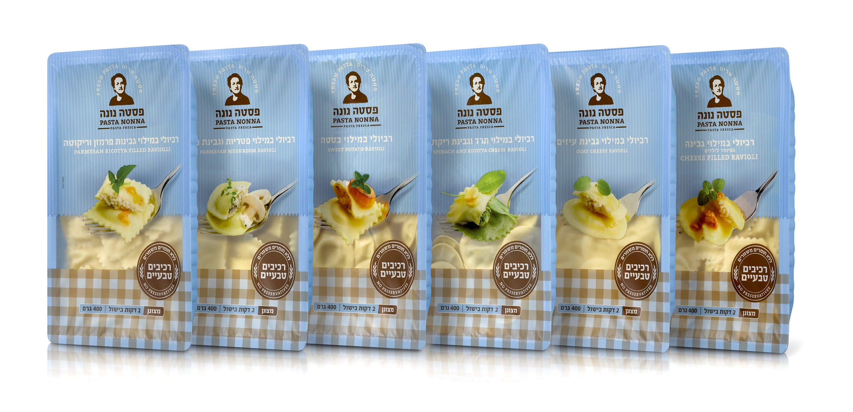 מה נסגר:חברת "פסטה נונה" משיקה סידרה חדשה של מוצרי רביולי וניוקי. סדרת הרביולי החדשה כוללת רביולי במילוי גבינות פרמזן וריקוטה, רביולי במילוי בטטה, רביולי במילוי תרד וגבינת ריקוטה, רביולי במילוי פטריות וגבינת פרמזן, רביולי במילוי גבינה במיוחד לילדים, רביולי במילוי גבינת עזים, ניוקי תפוח אדמה.