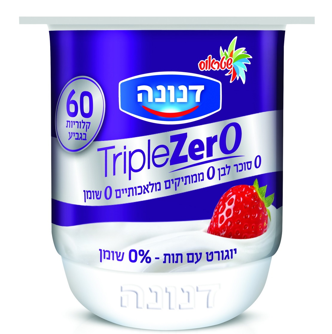 • יוגורט דנונה טריפל זירו- יוגורט הדיאט החדש של דנונה- יוגורט פרי מפנק עם 0 סוכר לבן , 0 ממתיקים מלאכותיים ו- 0 שומן .היוגורט מומתק עם הממתיק הטבעי מצמח הסטיביה ויש בו סה"כ 60 קלוריות לגביע. בנוסף מכיל חיידקים פרוביוטיים מסוג ביפידוס. קינוח יוגורט אידיאלי למי ששומר על המשקל.