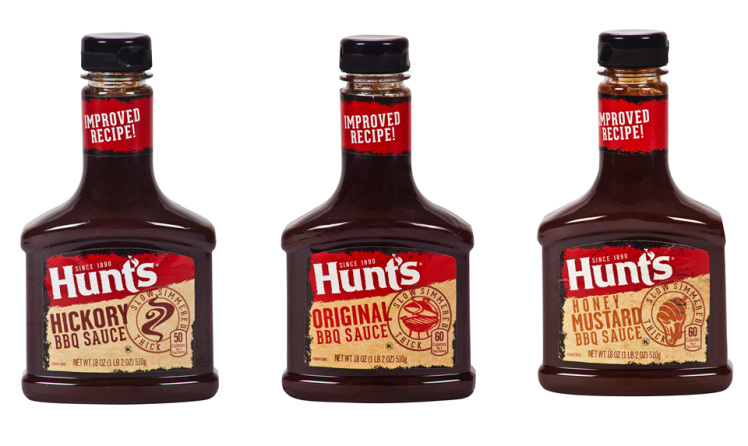 Hunt's BBQ מוצעים במגוון של שלושה טעמים: אורגינל, היקורי (מעושן) ודבש חרדל.