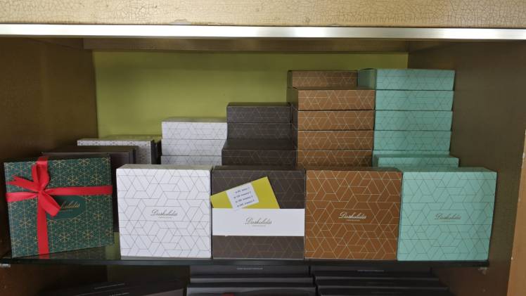 בחנות ניתן למצוא כ- 50 סוגי פרלינים, חפיסות שוקולד מריר וחלב, מרמלדות ועוד.
