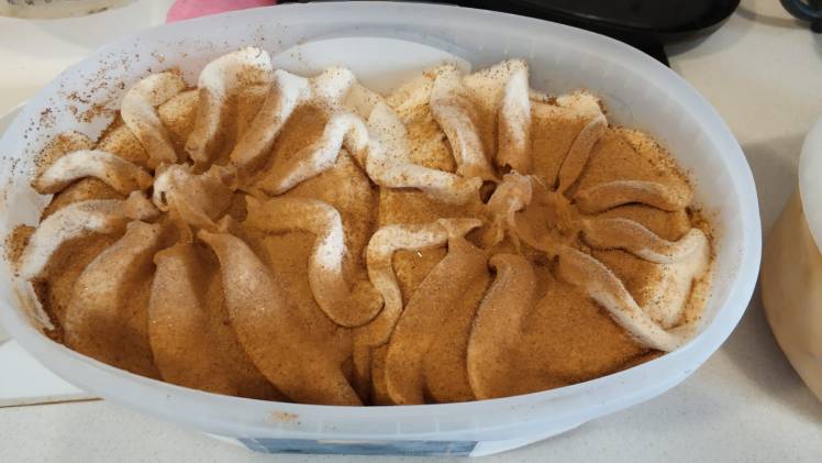 טירמיסו – גלידה משפחתית בטעם טירמיסו בתוספת שברי עוגיות, סירופ שוקולד ואבקת קקאו.
