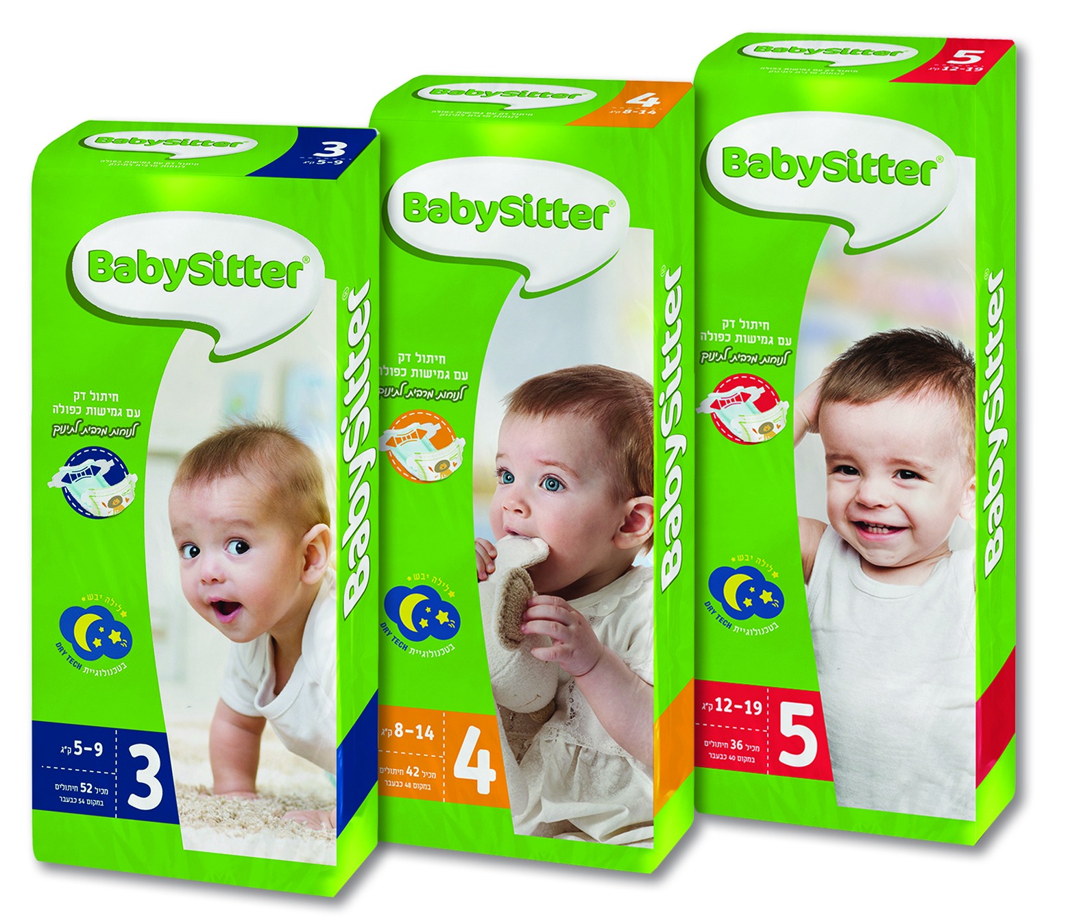 חיתולי בייביסיטר החדשים והמעוצבים, המתאפיינים באיכות גבוהה, זכו לציון המשוקלל הגבוה ביותר וכן לציון הכי גבוה בפרמטרים של הגנה מפני נזילות ויובש פני השטח עפ"י בדיקה שנערכה במעבדת SGS שבצרפת. אריזות חיתולי בייביסיטר החדשים ישווקו במידות 3,4, 4+ ,5ו- 6.