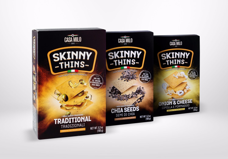מאז 1870 מתמחים אנשי CASA MILO ביצירת מאפים מלוחים המבוססים על חומרי הגלם שיש למחוז פוליה הדרומי העשיר בחיטה ובגידולי שדה להציע. הקרקרים האיכותיים של SKINNY THINS משווקים בישראל בשלושה טעמים: חטיפי קרקרים אפויים עם זרעי צ'יאה, חטיפי קרקרים אפויים בסגנון מסורתי וחטיפי קרקרים אפויים עם בצל וגבינה.
