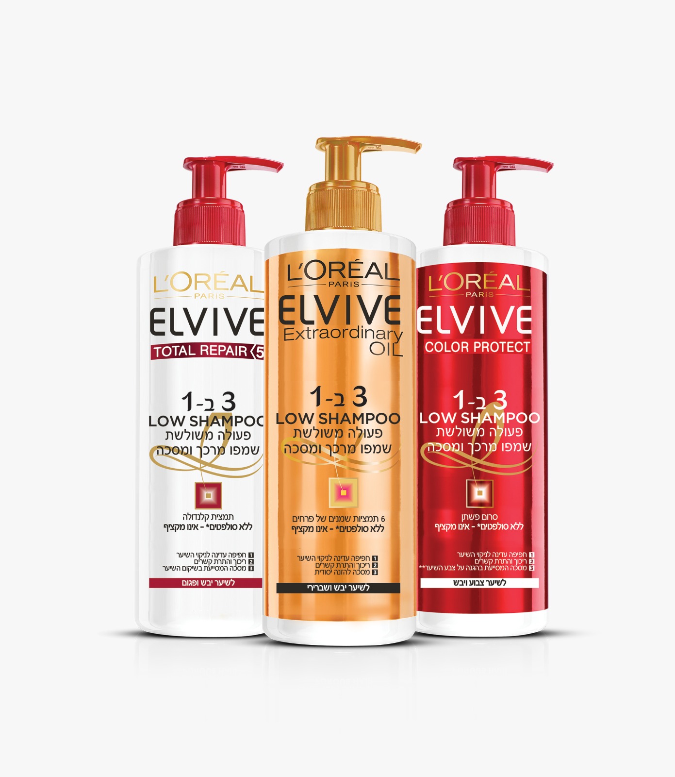 ELVIVE 3 IN 1 פעולה משולשת- שמפו, מרכך ומסכת טיפוח- במוצר אחד עם פורמולה מטפחת השומרת על שיער עדין, ללא סולפטים– לכן אינה מקציפה.