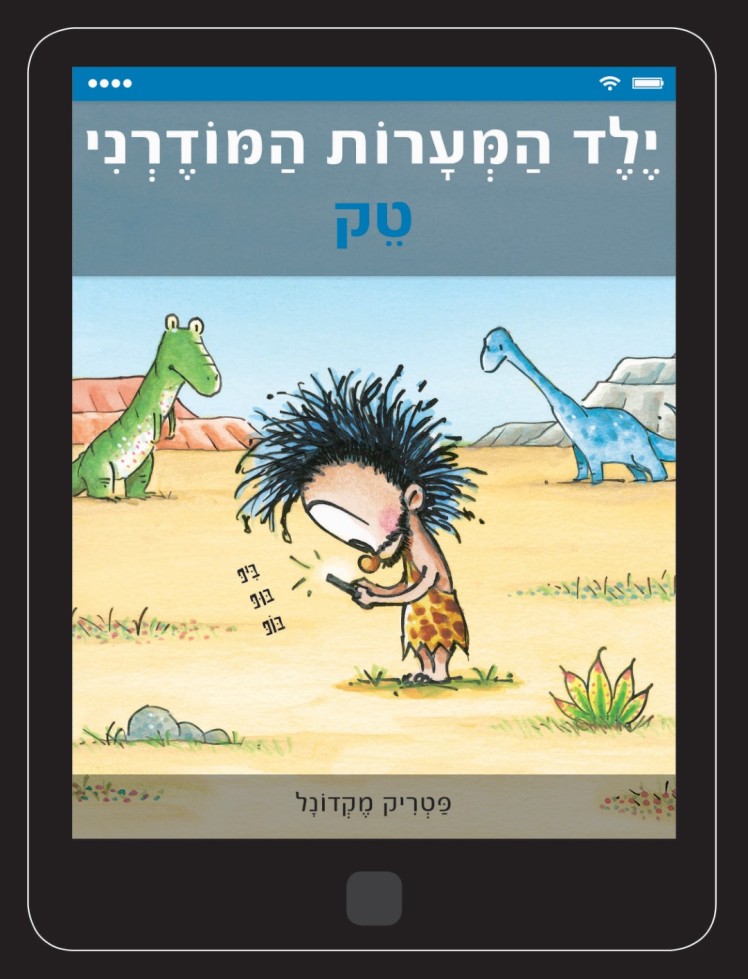 טק הוא ילד מערות טכנולוגי בעידן דיגיטלי, המבלה את כל ימיו מול מסכים. דפי הספר המעוצבים כעמודים בטאבלט מעצימים את החיבור בין הקורא הצעיר לטק וממחישים את השתלטות הטכנולוגיה על עולמם של ילדים רבים.