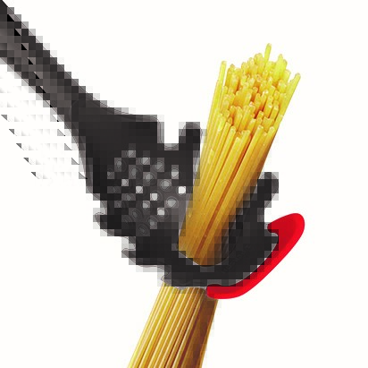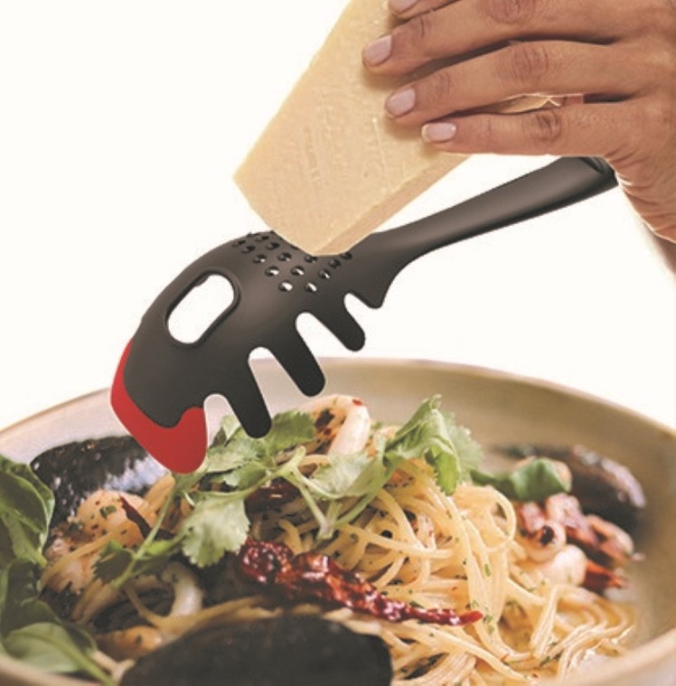 כף ובה חורים בתחתית על מנת לסנן את הפסטה מן הנוזלים, פתח מידה להכנת מנה בודדת המאפשר להכין ולמדוד בדיוק את מספר המנות הרצוי, וכן מגרדת בגב הכלי לגירוד קל ונוח של שום, גבינה ועוד ישירות אל תוך התבשיל. קצוות הכלי עשויים מסיליקון גמיש, המתאים במיוחד לשימוש בכלים בעלי ציפוי Non- Stick. מחיר: 32.50 ₪.
