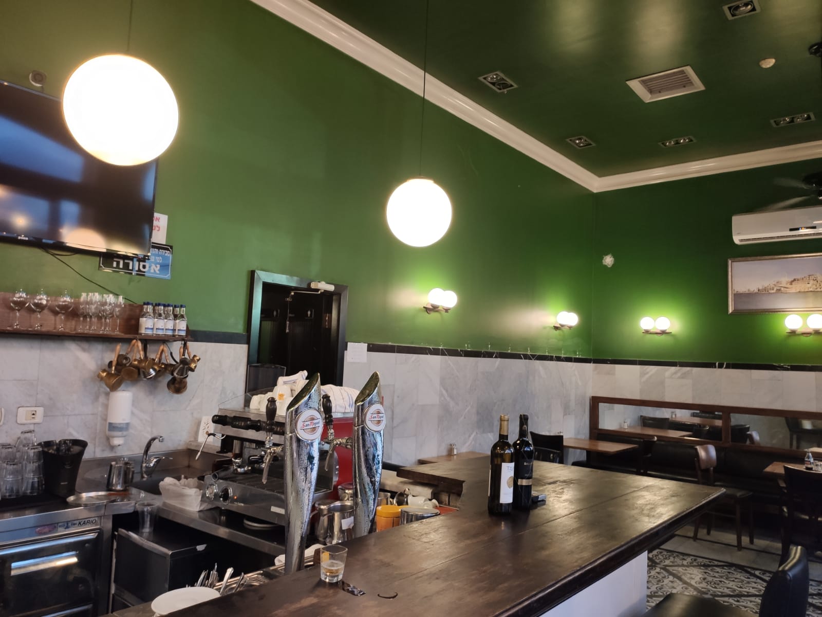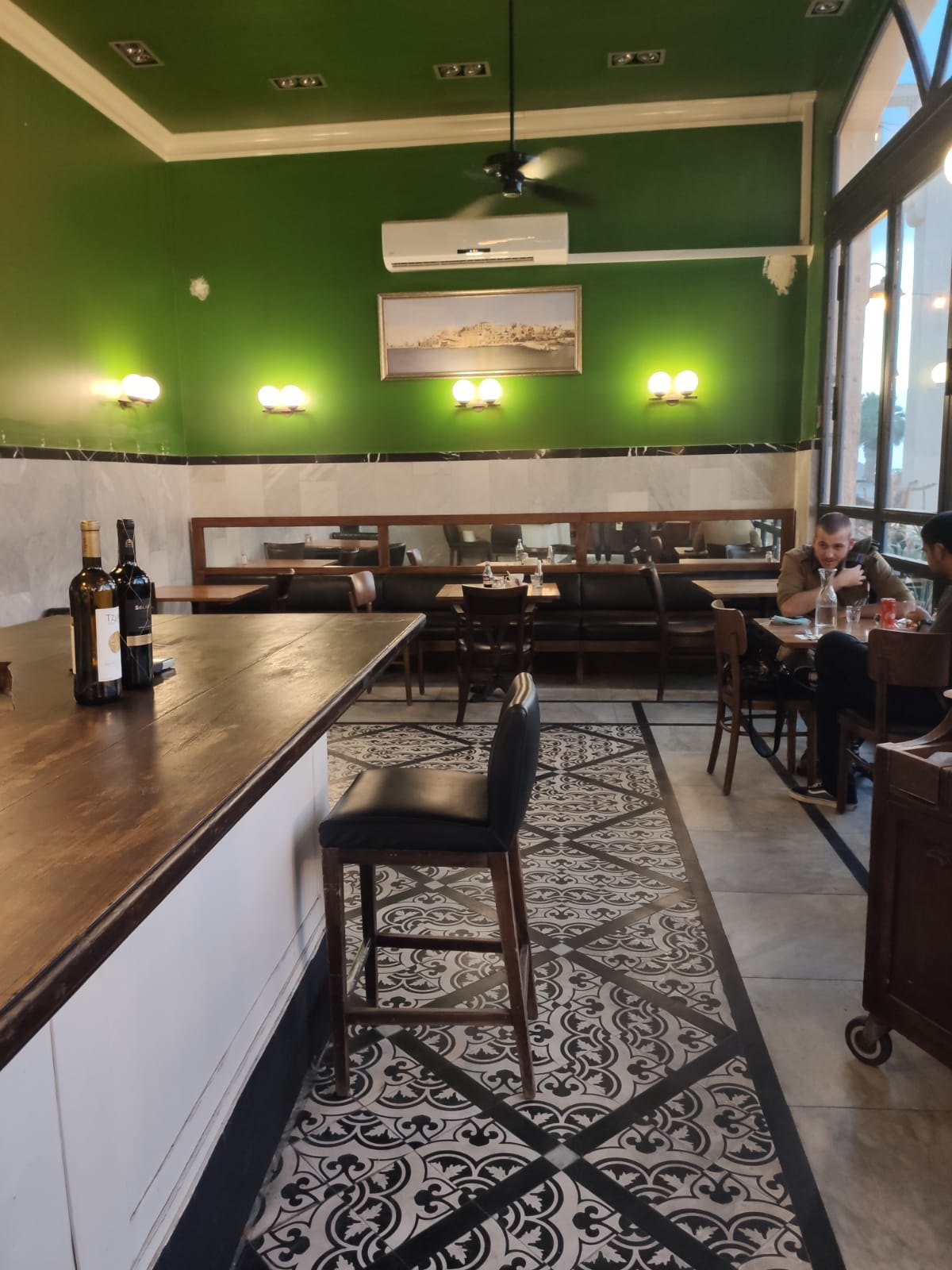 הלכתי עם ידידי היקר אורי לשבת שם רגע לפני שהחושך יורד. המקום מעוצב בצורה ייחודית אוטנטית לאיזור, הצבע השולט הוא ירוק, הרצפה מצויירת והאווירה חמה ונעימה. אפשר לשבת בחוץ או בפנים.
