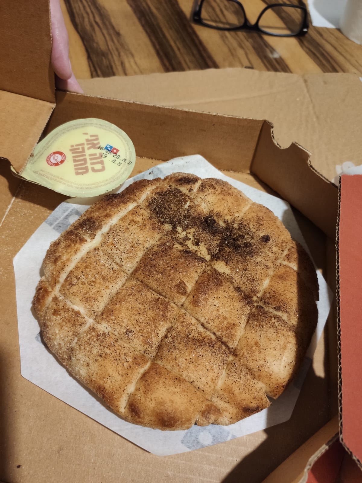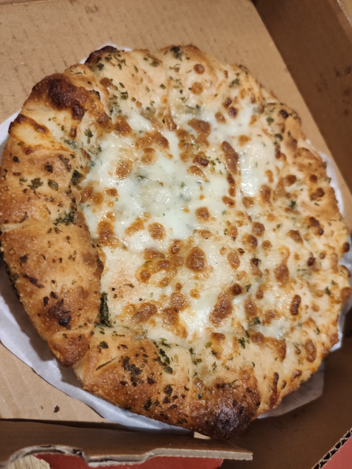 גרסה חדשה ופריכה ללחם השום האלמותי של הרשת- הגרסה החדשה מוצלחת מאוד. הלחם רך ומלא בחמאה ושום. מעל יש תיבול עדין וגבינה. זה כמו פיצה מאוד עבה אבל רכה מאוד ונמסה בפה.