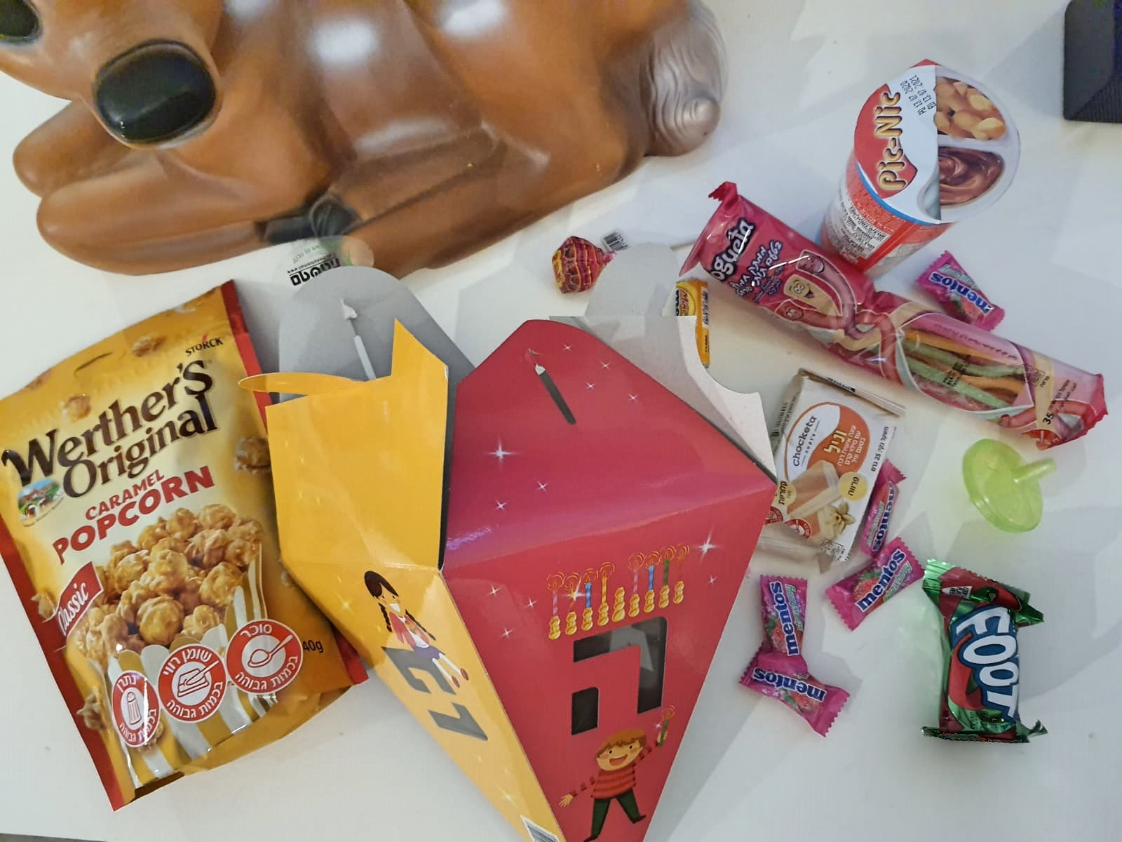 תכלס: קיבלתי חבילת שי חמודה שהבת שלי מאוד אהבה לפתוח אותה. היו שם שני מטבעות שוקולד, המון מנטוסים בכל מיני צורות, חמצוצים (הכי שווה!), אריזת גריסיני עם שוקולד, עוגה קטנה ועוד. זה ממש שווה, ועל הדרך זו גם תרומה, אז בכלל זה שווה. אם אתם עובדים במקום עבודה אפשר לרכוש לעובדים רכישה מרוכזת דרך הלינק שצירפתי.