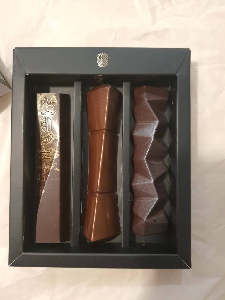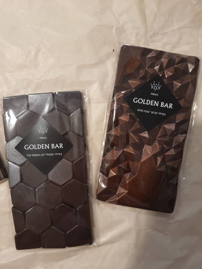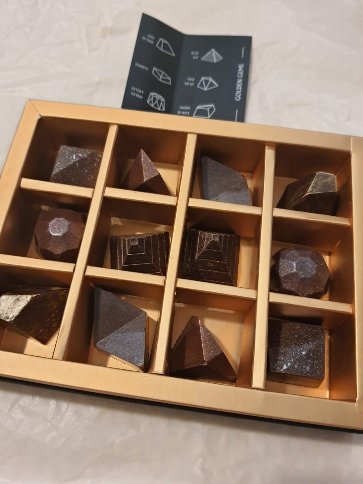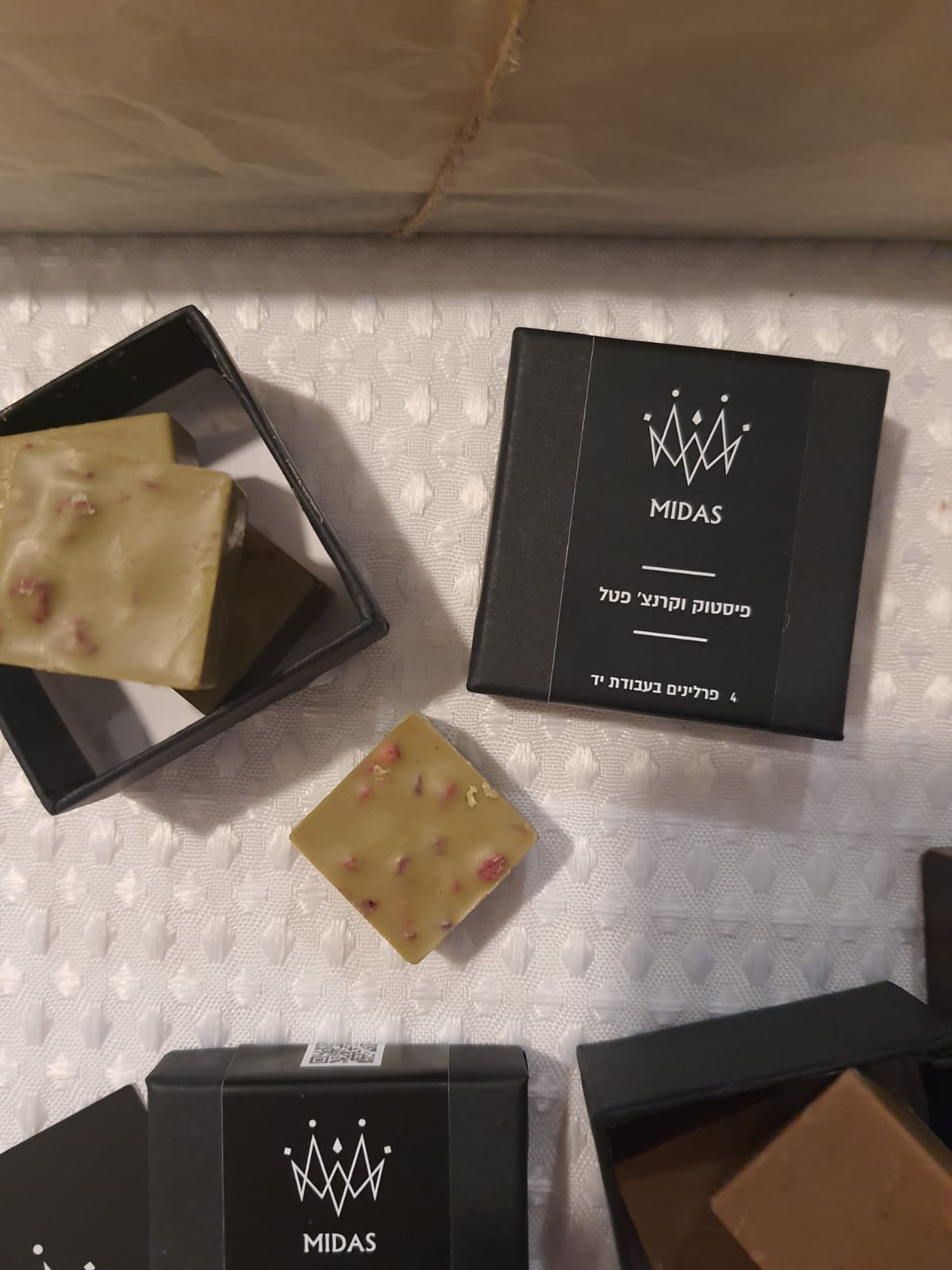 לגבי השוקולד- הו! טעמתי את כל מה שמידאס מייצרים, וזה בהחלט טעים, חדשני, מעוצב ומפתיע. יש פרלינים בעיצוב מוזהב עם אלמנטים מצריים כמו הפירמידות וכתב חרטומים. הטעמים: