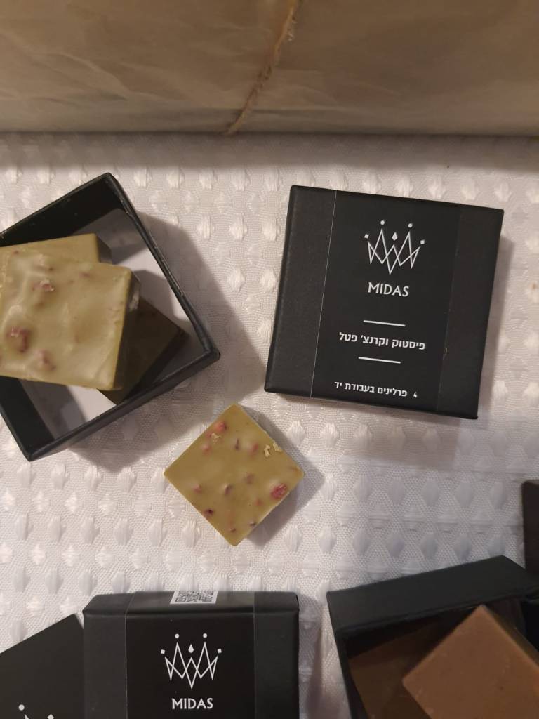 לשוקולד מידאס יש חנות מרשימה בבן יהודה 94 בת אביב. המקום קטן ואינטימי אבל אפשר לשתות בו קפה מבלנד שמכינים במיוחד למידאס, יש גם צ'אי+, ובקומה העליונה יש גלריה עם תערוכות מתחלפות של אומנים מקומיים. מאחורי המותג עומד דור, שוקולטייר מחונן שיוצר את כל הטוב הזה.
