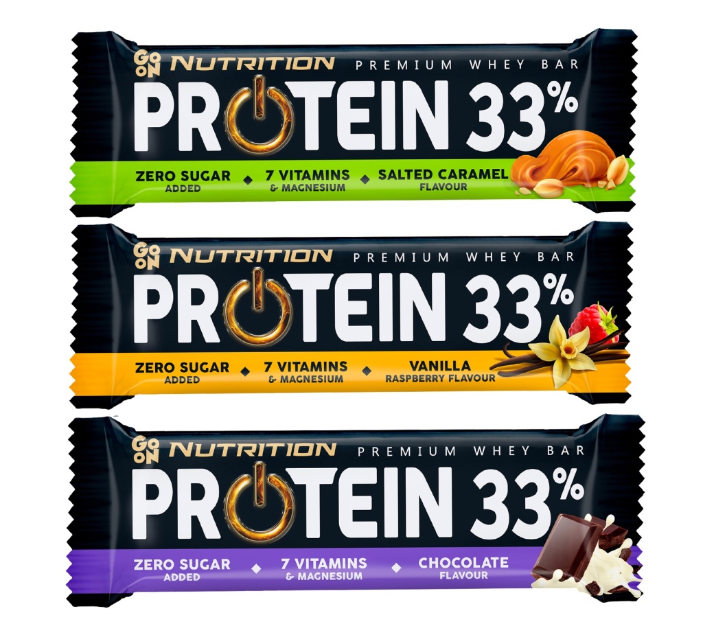 מה הקטע: הכירו סדרת חטיפי חלבון חדשה - :go on nutrition כל חטיף במשקל 50 גרם - מכיל 33% חלבון.