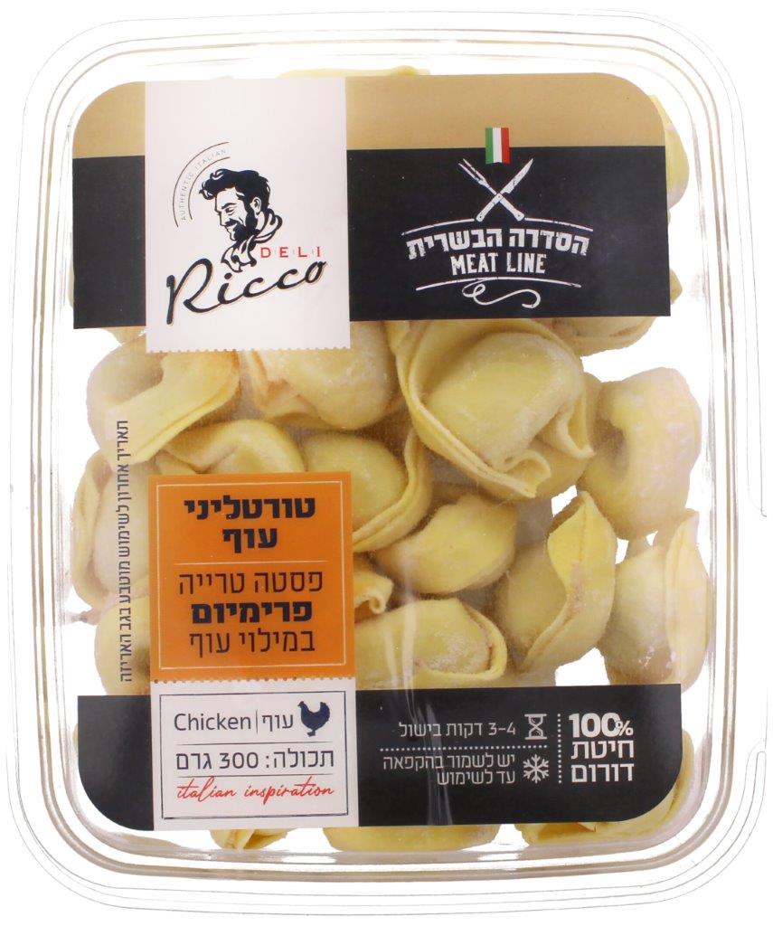 פסטה מצוננת טרייה מ-100% חיטת דורום איכותית, בצורת טורטליני במילוי עוף. הפסטה עשויה מחומרי הגלם הטובים ביותר, בעלת אחוז חלבון גבוה בקמח, אינה מכילה חומרים משמרים, צבעי מאכל או אבקות.