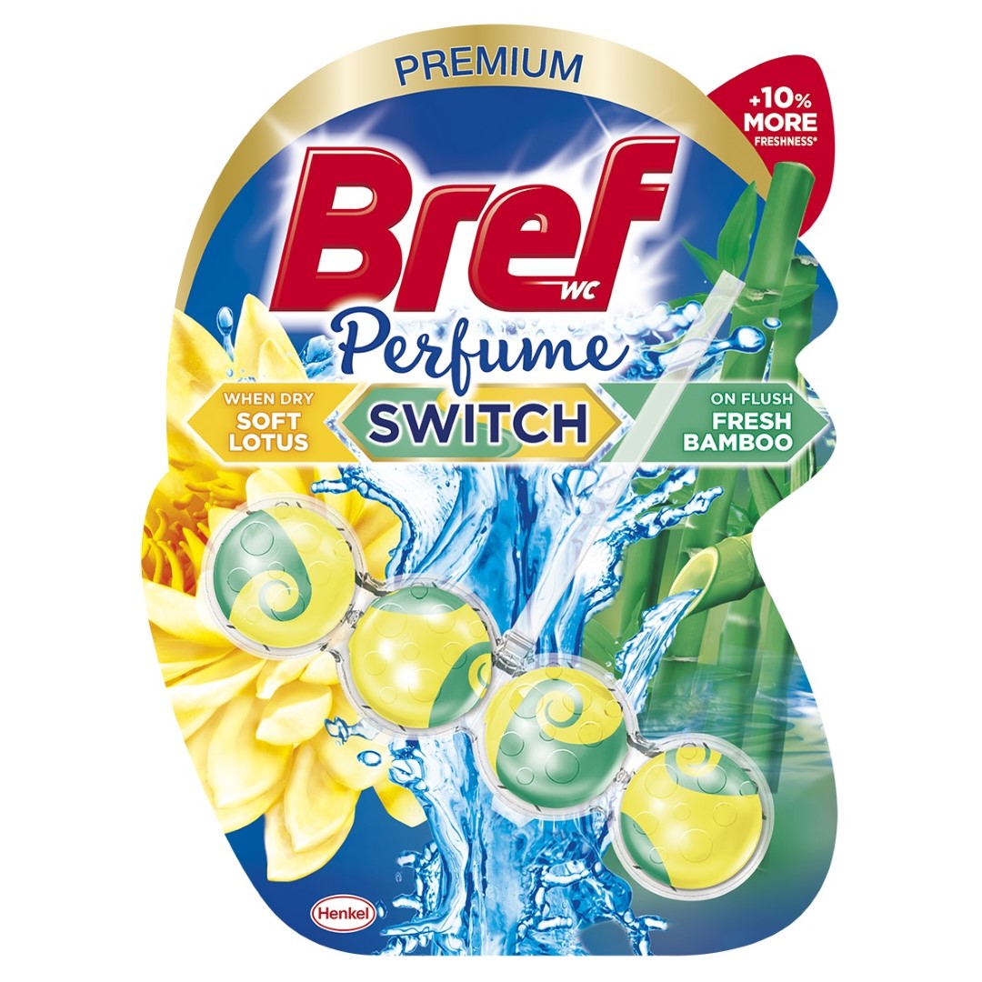 סדרת Bref Perfume Switch, מעניקה רעננות עוצמתית בניחוחות בושם מתחלפים בכל הדחה, ומבטיחה 4 פעולות של ניקיון עוצמתי: