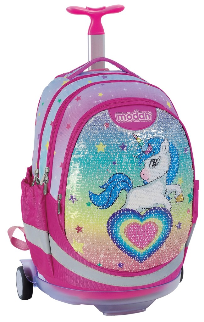 השנה, מחדשת מודן את המגוון עם ליין עשיר ובלעדי של מותגי ילדים מובילים כמו סוניק, הריינבו קורן, פרוזן, מיני מאוס, מועדון ווינקס, LOL, חד קרן, נסיכות דיסני כמו הלנה הנסיכה, בוב ספוג, מכוניות, דרגון בול, ספיידרמן, בוב הבנאי, צבי הנינג'ה. בגזרת הספורט השיקה מודן תיקי כדורסל ותיקי כדורגל ושל קבוצות כמו ברצלונה וריאל מדריד. דגמים מיוחדים נוספים שיושקו השנה בלעדית במודן הם תיקים עם חזית מתחלפת המאפשרת החלפת האיור על פני התיק בעזרת קלפה מגנטית, בנוסף תיקי פייטים עם איורים של פרוזן, פלמינגו, הלו קיטי, תיקי תלת ממד ועוד. תיק גב אורטופדי: 239 ₪.